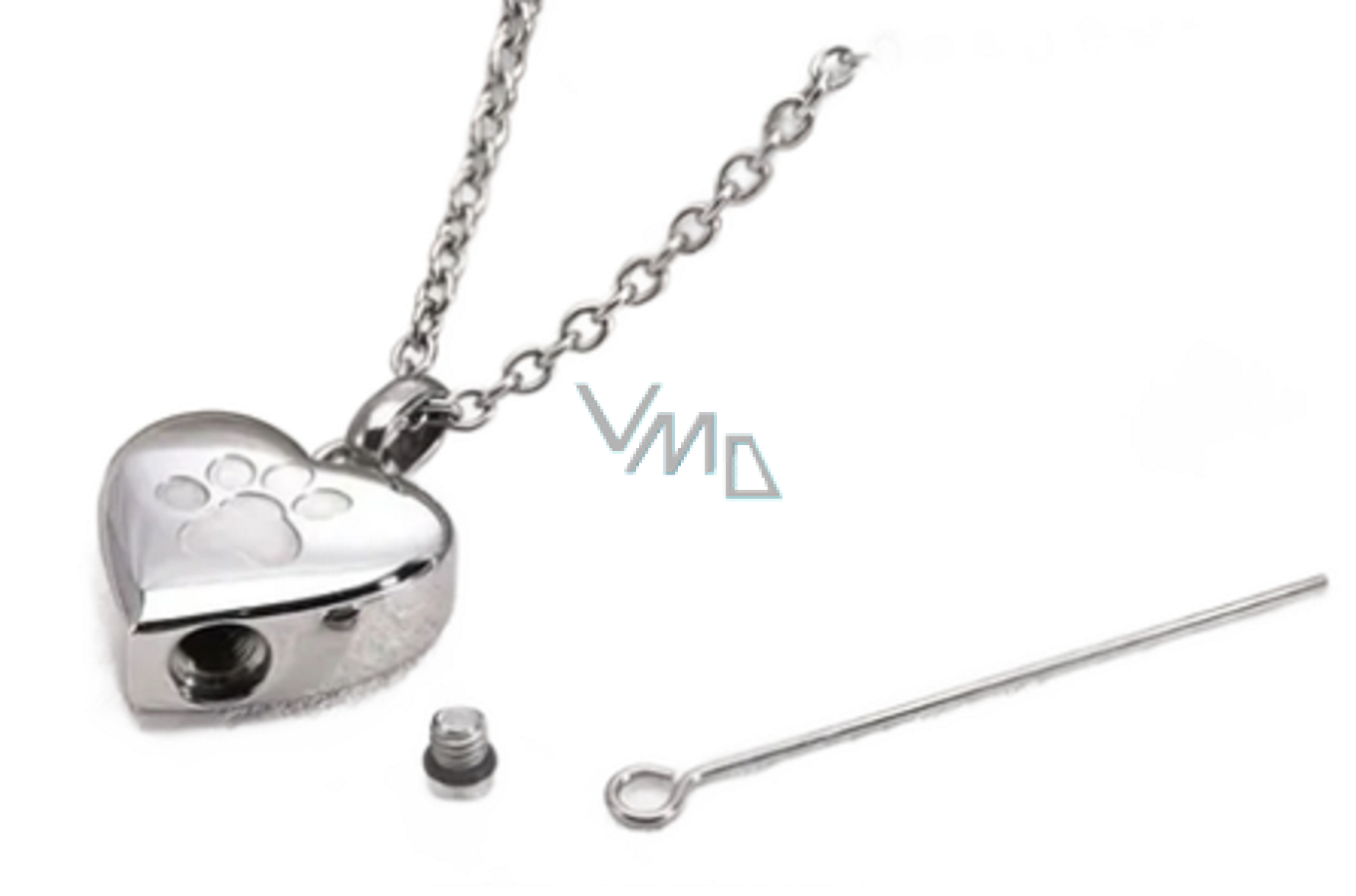 Elegantní stříbrný pietní náhrdelník ve tvaru srdce s jemně vyrytým motivem zvířecí tlapky je navržen jako citlivý vzpomínkový šperk. Umožňuje uchovat symbolickou část popela, zeminy z oblíbeného místa nebo drobnou památku na vašeho milovaného mazlíčka. Náhrdelník je vyroben z kvalitní nerezové oceli, která je odolná vůči korozi a vodě, takže ho můžete bezpečně nosit každý den.
