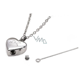 Pamětní, pietní urnový přívěsek, Srdce lesklé stříbrné, voděodolné, nerezová ocel 19 x 29 mm + řetízek 50 cm