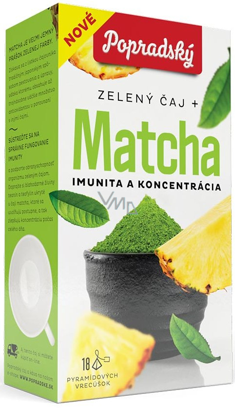 Poprad Wellness Tee aromatisierter grüner Tee + Matcha, Immunität und Konzentration 27 g, 18 Pyramidensäcke