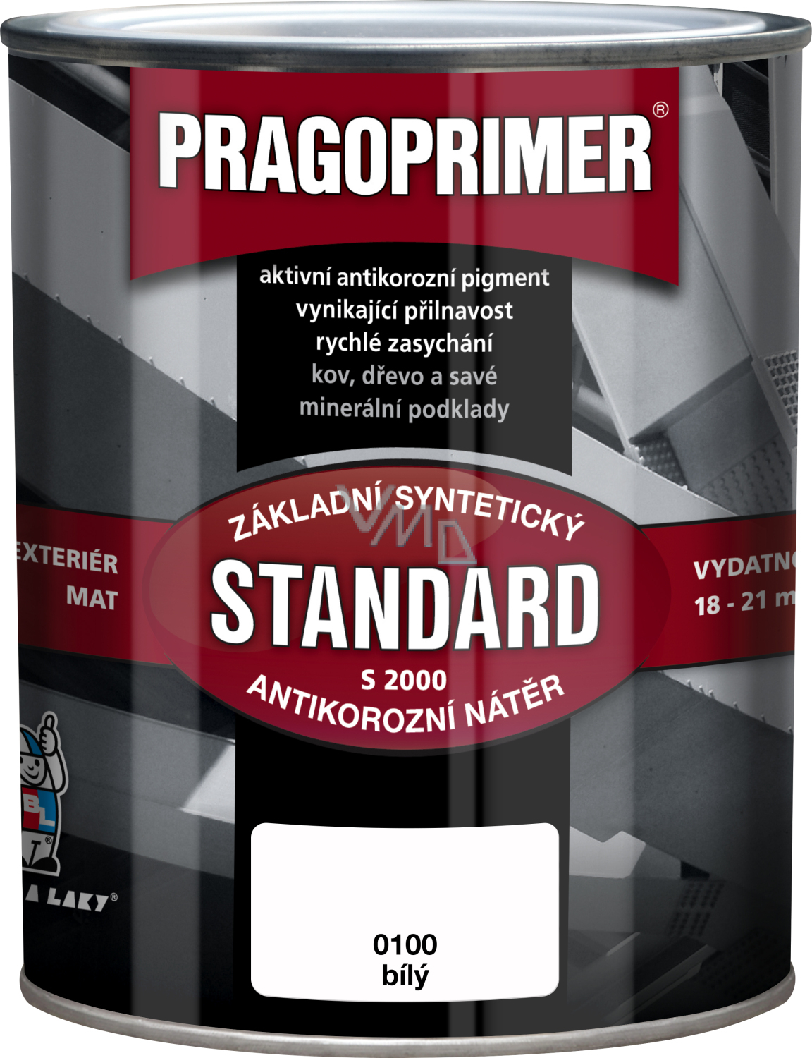 Pragoprimer Standard S2000 ist eine universal Grundierung für Metall und saugfähige Untergründe für innere und äußere Umgebungen, insbesondere unter synthetischen und an der Luft trocknenden Farbmaterialien, zum Beschichten von z.B. Blechkonstruktionen, Maschinen, Metall- und Holzmöbeln usw. Die Farbe hat hervorragende antikorrosive Eigenschaften, sehr schnelles Trocknen und universelle Anwendbarkeit.