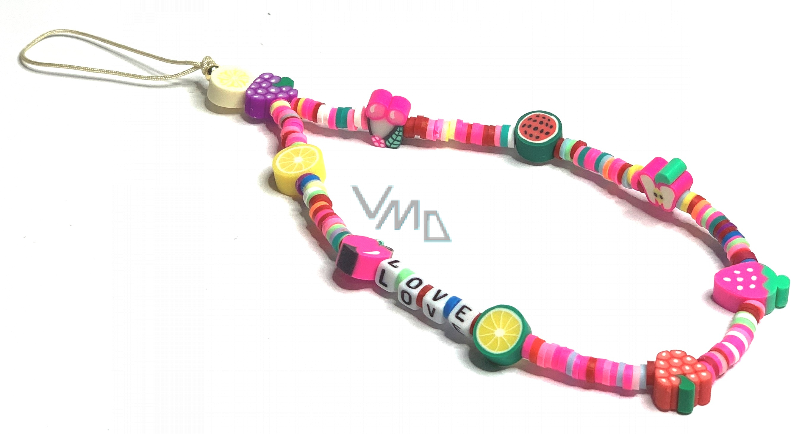 Anti-Verlust-Handy-Anhänger, Perlen, Obst, Liebe, Umfang 26,5 cm