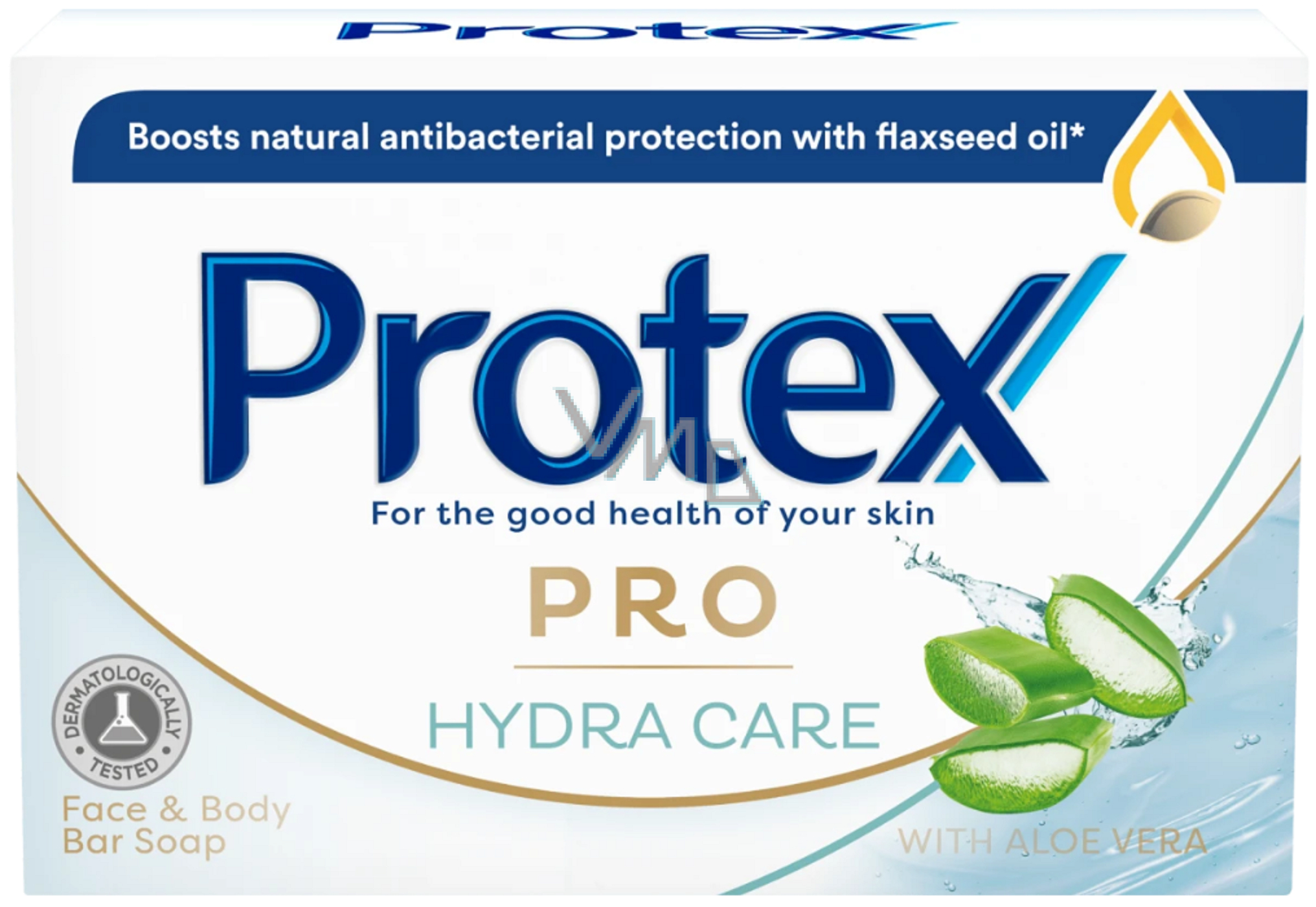 Tuhé mýdlo Protex Pro Hydra Care je navrženo tak, aby pomáhalo udržovat přirozenou vlhkost pokožky, aniž by narušovalo její rovnováhu. Tuhé mýdlo obohaceno o Aloe Vera obsahuje Lněný olej a glycerin, které jsou přírodními hydratačními látkami. Lněný olej v mýdlu je více než jen přirozeným zvlhčovadlem, ale také posiluje přirozenou antibakteriální ochranu a pomáhá udržovat vaši pokožku zdravou. Jemné mýdlo, které bylo Dermatologicky testováno a je ideální pro každodenní hygienu.