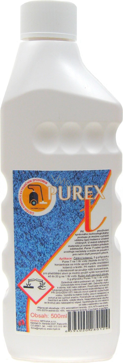Purex T je určen k čištění koberců, podlahových krytin, potahů a čalounění extrakčním způsobem pomocí extrakčních čistících strojů a jiných podlahových strojů s následným odsátím za mokra. Velmi dobře se osvědčuje i při mytí nenasákavých podlah (PVC, dlaždice) běžným ručním postupem. Prostředek má sníženou pěnivost a je vyroben na bázi tenzidů mýdlového typu.