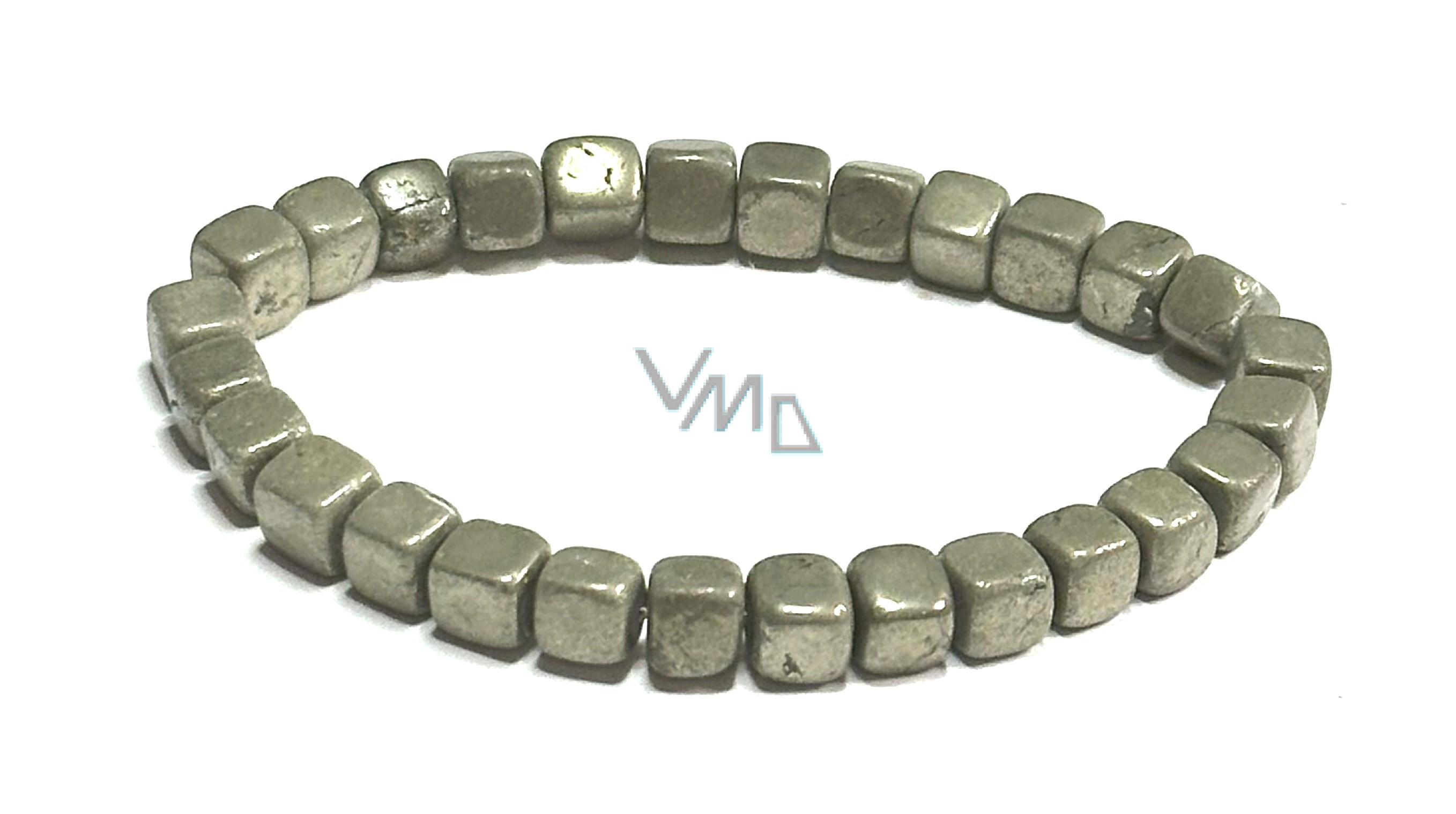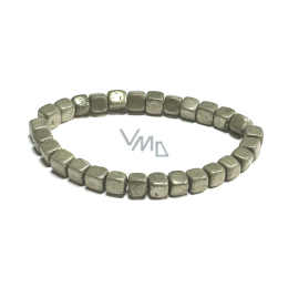 Pyrit Armband elastisch Naturstein, Würfel 6 - 7 mm / 16 - 17 cm, Meister des Selbstbewusstseins und des Überflusses