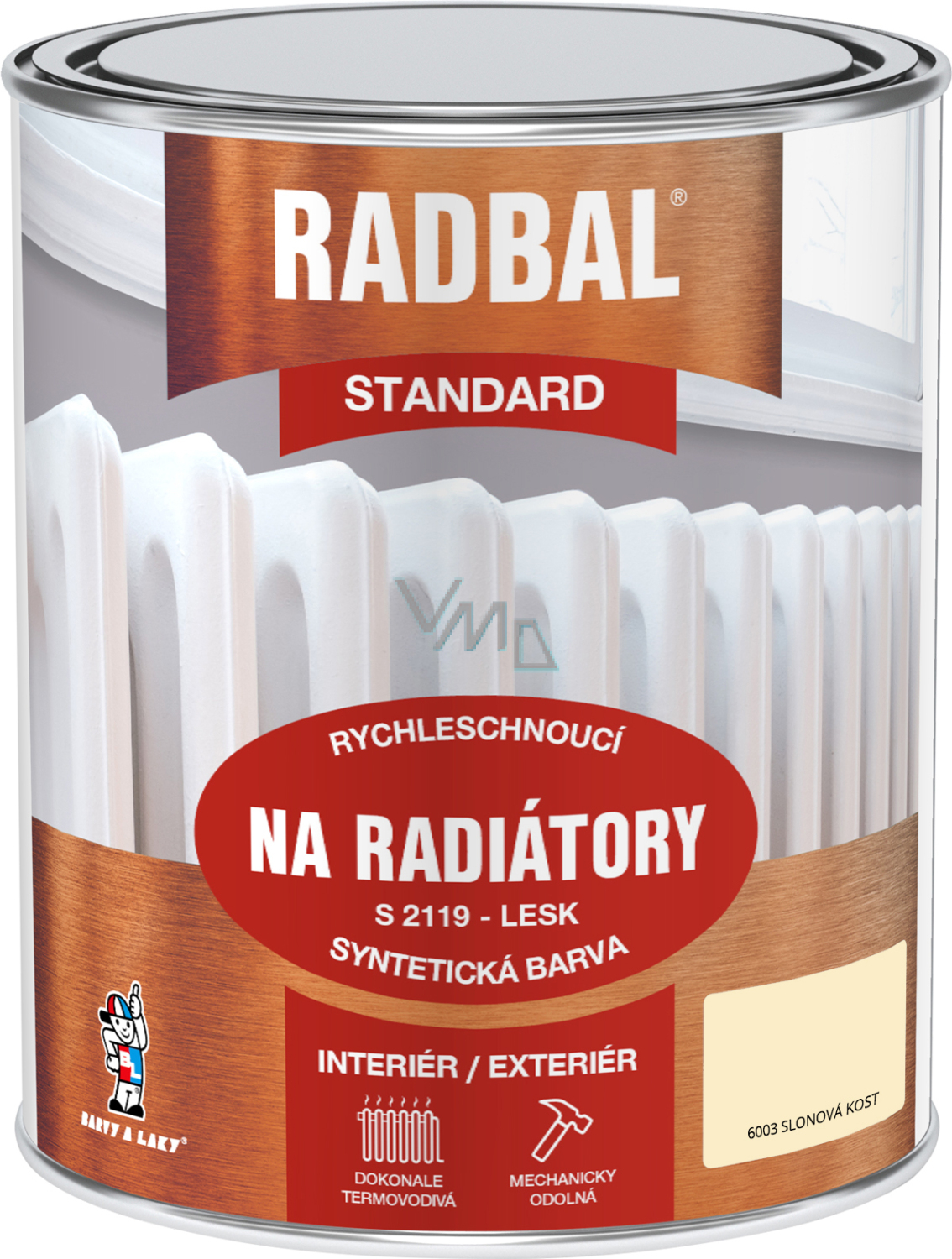 RADBAL S2119 je syntetická vrchní barva na radiátory a kovové teplovodní potrubí.