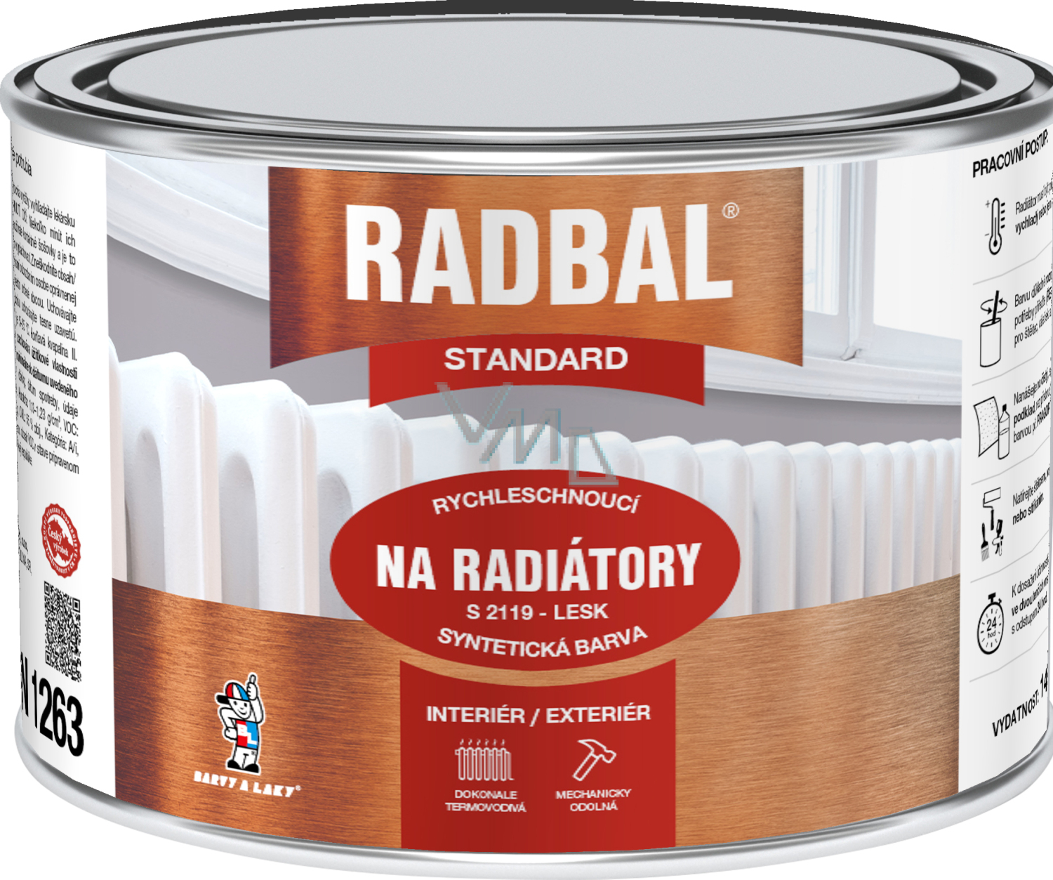 RADBAL S2119 je syntetická vrchní barva na radiátory a kovové teplovodní potrubí.