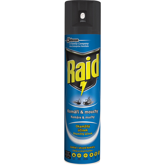 Raid gegen Mücken und Fliegen ist ein insektizider, wasserbasierter Aerosol-Präparat mit frischem Duft, das zum sofortigen Töten von fliegenden Insekten wie Mücken, Fliegen, deren Eiern sowie Wespen und anderen dient. Es bietet langanhaltenden Schutz und wirkt auch als präventives abweisendes Spray. Es hat einen sehr angenehmen Duft und bietet direkten Schutz für bis zu 24 Stunden und wirkt auch als präventives abweisendes Spray.
