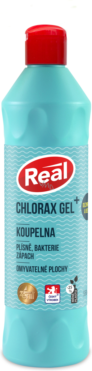 Real gel chlorax plus je dezinfekční a bělící prostředek, který ničí bakterie, viry, kvasinky a plísně. Hustý gel dobře ulpívá na povrchu a tím prodlužuje dobu působení. Odstraňuje zápach, mastnotu, odolnou špínu, usazeniny a další druhy nečistot. Duo parfemace eukalyptus a máta.