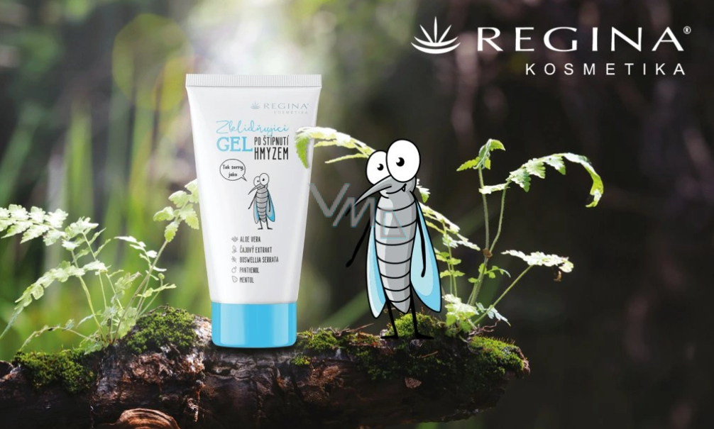 Regina zklidňující gel zprostředkuje okamžitou úlevu po bodnutí, poštípání, či pokousání hmyzem nebo po spálení kopřivami. Zklidňující a chladící účinky pomáhají zmírnit svědění, zarudnutí, i otoky na pokožce. Ať už vás štípl komár, zakousl hmyz, nebo se do vás pustil sluneční paprsek, případně vás žahla kopřiva či jakákoli jiná rostlina, pokožku je třeba co nejrychleji zklidnit, aby nedošlo k dalšímu podráždění. Proto jsme namíchali ty nejlepší byliny a extrakty do gelu, který v podobných situacích nic nenahradí.