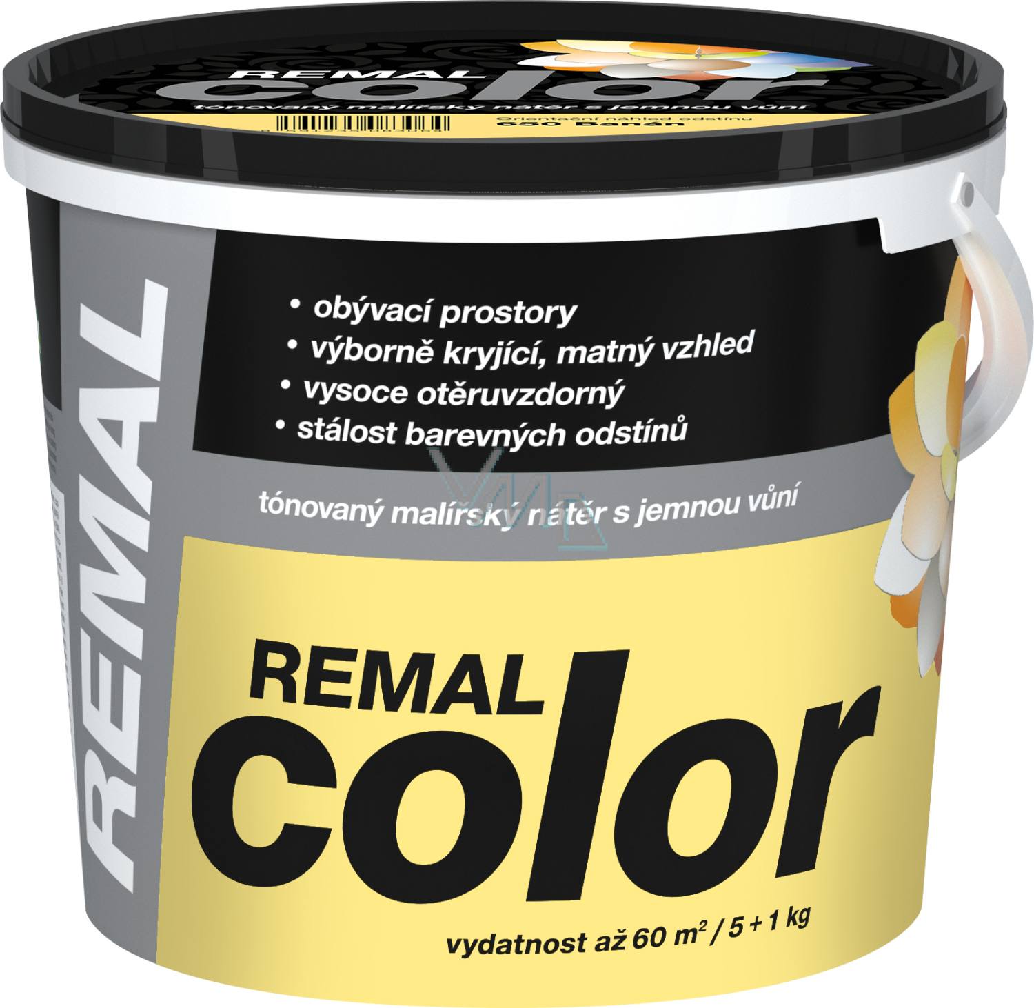 REMAL Color je vodouředitelná natónovaná malířská barva s příjemnou vůní v atraktivních odstínech. Je doporučený k malování stěn i stropů v interiéru, na omítky včetně sanačních, sádrokartony a jiné podklady. Je snadno zpracovatelný, zdravotně nezávadný a ekologický.