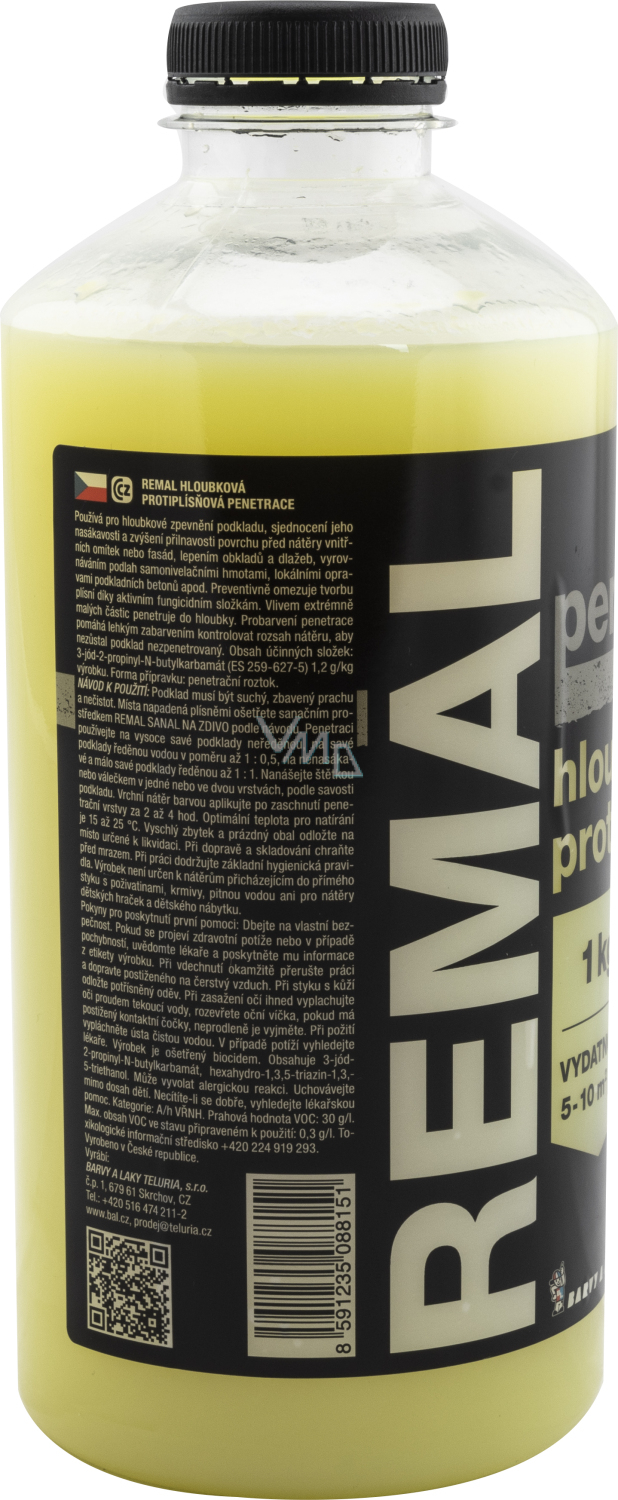Präventiv wird die Schimmelbildung durch aktive fungizide Komponenten eingeschränkt. Aufgrund der extrem kleinen Partikel dringt sie tief ein. Die Einfärbung der Grundierung hilft, den Umfang des Anstrichs durch eine leichte Färbung zu kontrollieren, um sicherzustellen, dass der Untergrund nicht unbehandelt bleibt. Gehalt an aktiven Bestandteilen: 3-Jod-2-Propinyl-N-Butylkarbamid (ES 259-627-5) 1,2 g/kg des Produkts.