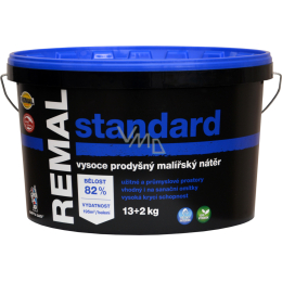 REMAL Standard ist eine klassische natürliche wasserverdünnbare Kaolinfarbe für Wände. Sie bietet hervorragende Deckkraft, ist diffusionsfähig, abriebfest und hat eine standardmäßige Weißheit von 82 %. Die REMAL Wandfarbe wird zum Streichen von Putz, Beton, Gipskartonplatten, Cetris-Platten, Spanplatten und Sanierputzen im Innenbereich verwendet. Die Farbe zeigt eine Abriebfestigkeit im feuchten Zustand – gemessen nach ČSN EN ISO 11998 – Klasse 5. (Klassifizierung nach EN 13300).