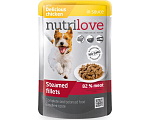 Nutrilove Geschmorte Filets mit saftigem Hähnchen in Sauce komplette Hundefuttertasche 85 g