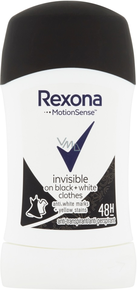 Rexona tuhý antiperspirant Invisible On Black + White Clothes je naší nejlepší ochranou proti bílým stopám a žlutým skvrnám. Rexona. Nezradí tě!