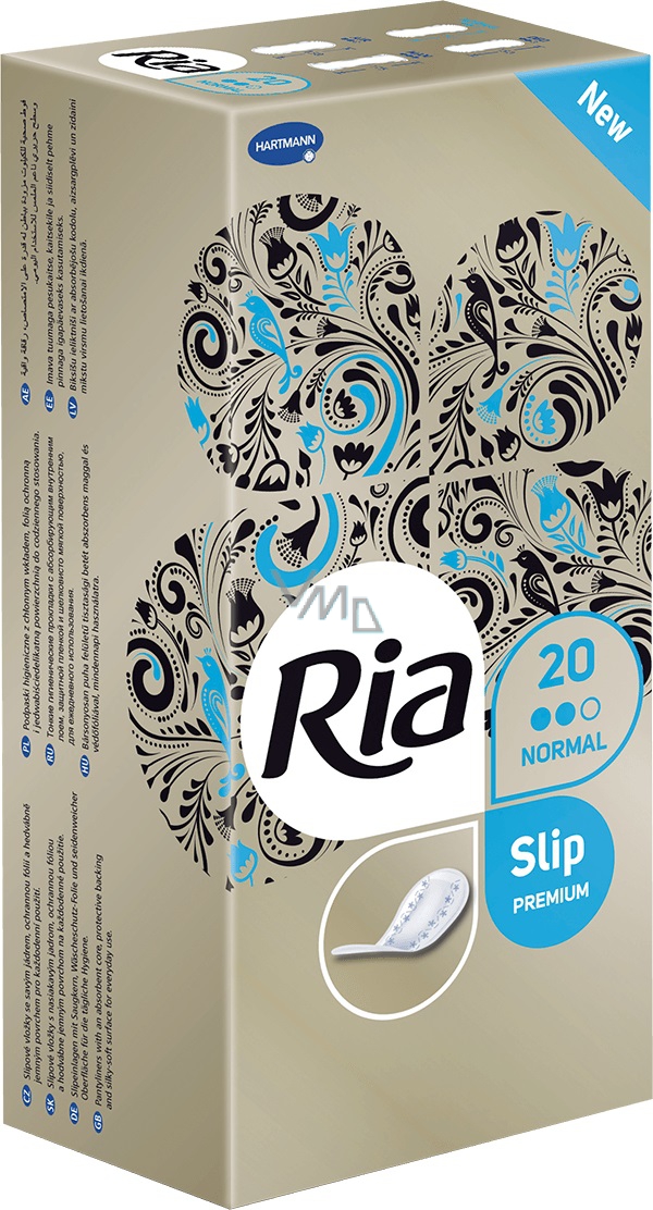 Prémiové slipové vložky Ria díky tenkému savému jádru bezpečně pohlcují tekutinu a rovněž pachy. Jejich příjemný měkký povrch je šetrný vůči pokožce a zajišťuje každé ženě maximální pohodlí. Díky jedinečnému tvaru v podobě písmene V se optimálně přizpůsobí tělu a chrání přesně v těch místech, kde je potřeba. Extra měkké textilní proužky po stranách poskytují tělu nejvyšší komfort a prodyšná fólie na ochranu prádla dovoluje pokožce dýchat a poskytuje bezpečnou a šetrnou ochranu.