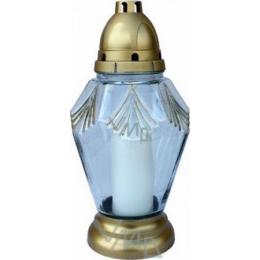 Lampa hřbitovní skleněná. výška 29 cm obsahuje svíčku v tubě doba hoření přibližně 90 hodin Mehr lesen