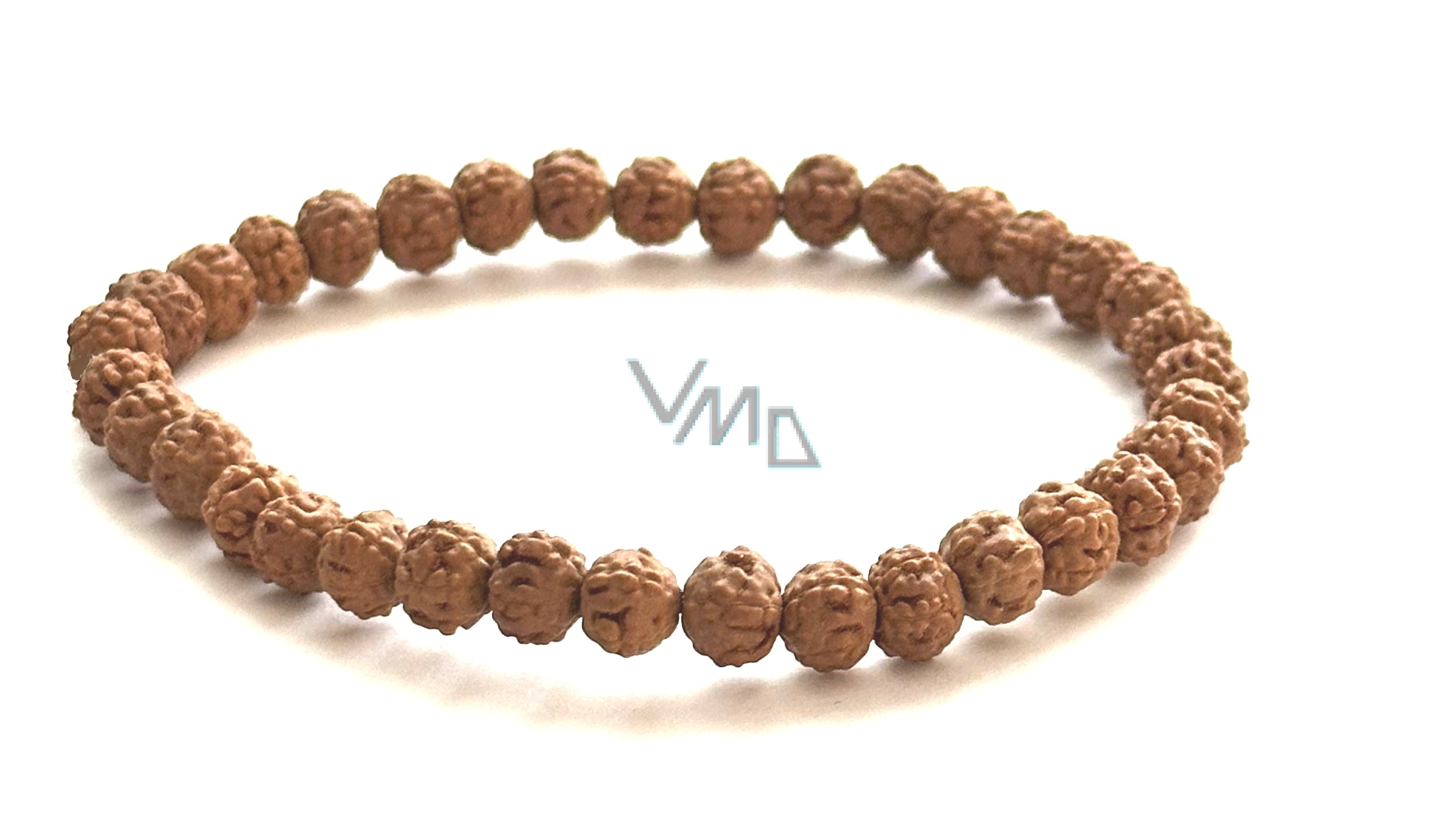 Rudraksha elastisches Armband aus natürlichen Samen, Kugel 6 mm / 16 - 17 cm
