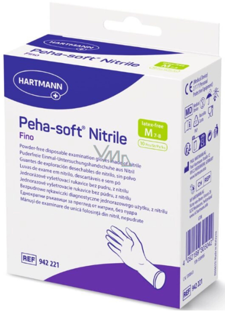 Hartmann Peha-soft Fino Nitril jednorázové ochranné rukavice, velikost M 10 kusů
