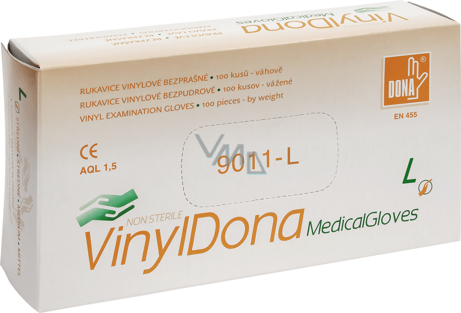 Beschreibung Dona Vinyldona puderfreie Vinyl-Handschuhe, Größe L 100 Stück im Karton