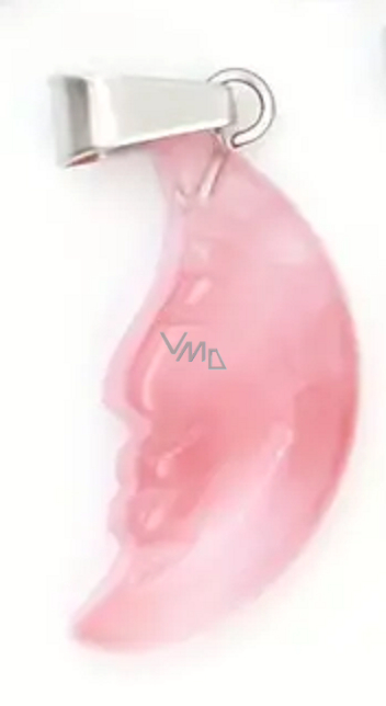 Rosenquarz Mond Anhänger Naturstein, handgeschliffene Figur 2,2 x 10 mm, Stein der Liebe