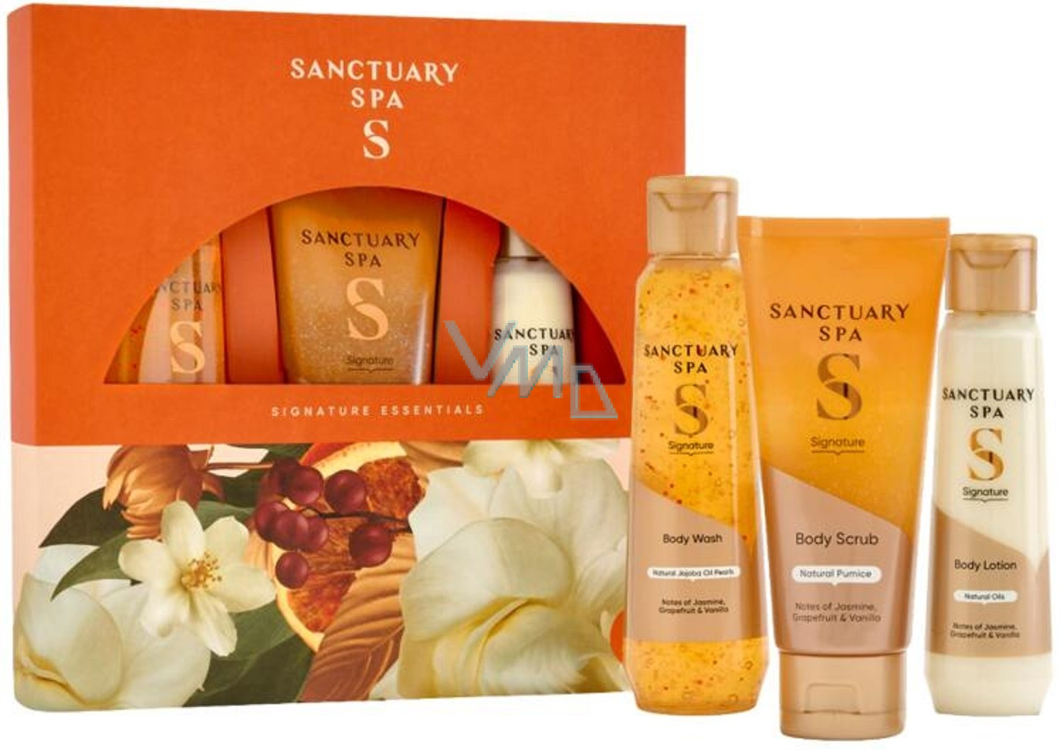 Dárkové sada Sactuary Spa Signature obsahuje tři základní exkluzivní výrobky. Naleznete zde peeling na tělo, aby vaše pokožka každý den zářila, tělové mléko a sprchový gel.
