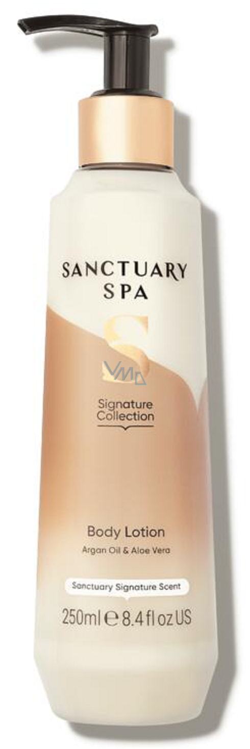 Jak tvrdí Sanctuary Spa – ať už máte 30 vteřin nebo 30 minut, vždy je třeba dopřát si svou oázu klidu. Tělové mléko Sanctuary Spa Signature Collection je naplněno směsí uklidňujícího aloe vera a bohatého arganového oleje, hydratuje suchá místa pokožky a zanechává ji sametově jemnou. Lehká textura se okamžitě vstřebá bez pocitu mastnoty. Zároveň vůně jasmínu, grapefruitu a vanilky zklidňuje mysl. Obsahuje 95% složek přírodního původu.