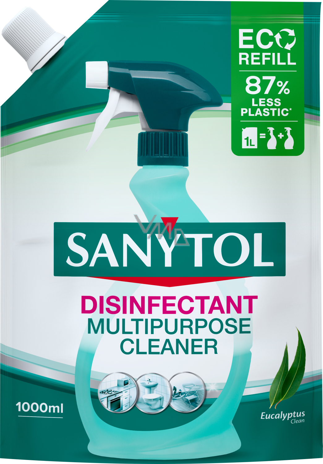 SANYTOL Oberflächendesinfektion hilft, Infektionen vorzubeugen, indem sie das Wachstum von Bakterien, Viren und Pilzen stoppt, die viele Krankheiten verursachen (Bronchiolitis, Gastroenteritis, ...). SANYTOL Universeller Reiniger reinigt und desinfiziert gleichzeitig Oberflächen im Haushalt. Er kann auch nur als Desinfektion für bereits gereinigte Flächen verwendet werden. Ideal für Räume im Haus (Küche, Badezimmer, Schlafzimmer) und auch für Gegenstände (Türknöpfe, Telefone, Mülleimer, ...).
