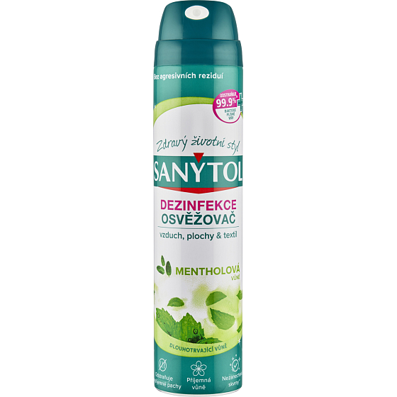 SANYTOL reinigt die Luft und desinfiziert Oberflächen in einem einzigen Schritt. Seine Zusammensetzung sorgt für perfekte Hygiene und hinterlässt einen angenehm frischen Duft. Tötet 99,9 % der Bakterien, Schimmel und Viren, einschließlich des Grippevirus Typ A (H1N1).