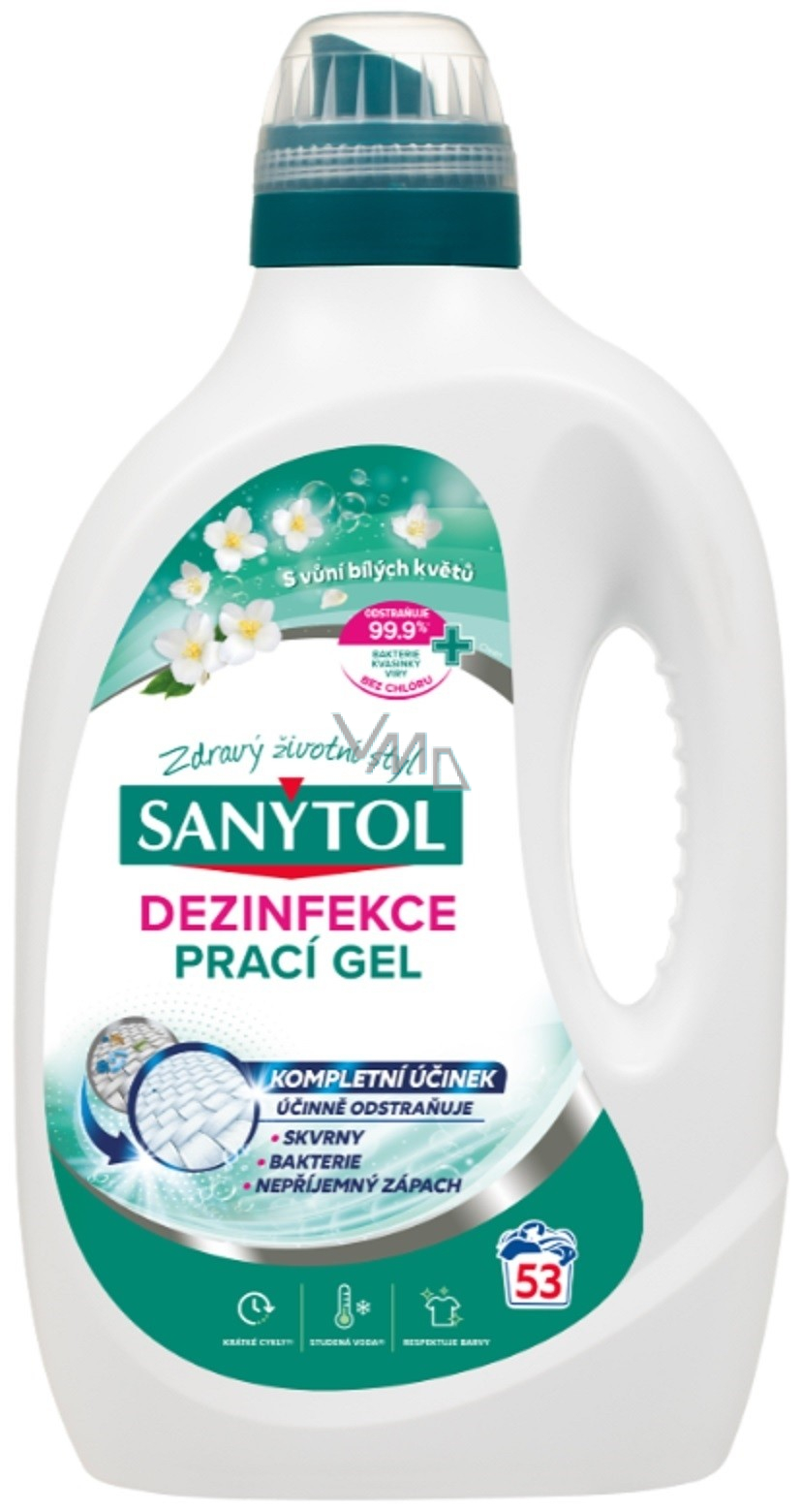 Prací gel Sanytol, odborník na dezinfekci bez Chlóru, vyvinul dezinfekční prací prostředek, který ničí bakterie, candida albicans a virus chřipky A H1N1 od 20 °C. Prádlo vyprané při nízké teplotě není úplně zbaveno mikrobů. Právě ty jsou původci nepříjemného zápachu, nemocí i podráždění kůže. Pouze praní na 90 °C zničí 100 % mikrobů v prádle. Jeho jedinečné složení účinně vypere bílé i barevné prádlo a přinese intenzivní pocit svěžesti.