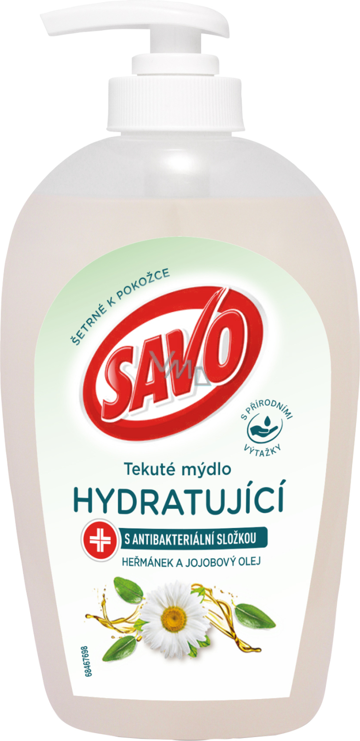 Flüssige Seife Savo mit antibakterieller Wirkung angereichert mit Kamille und Jojobaöl.