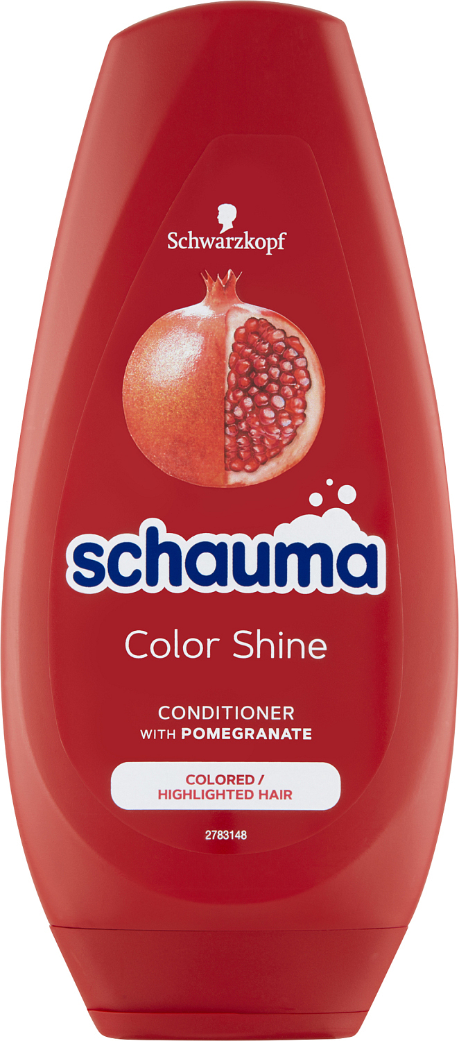 Schauma Color Shine Balsam für coloriertes Haar mit Extrakt aus Granatapfel. Bietet langanhaltenden Farbschutz und intensiven Glanz in Kombination mit Shampoo und Balsam.