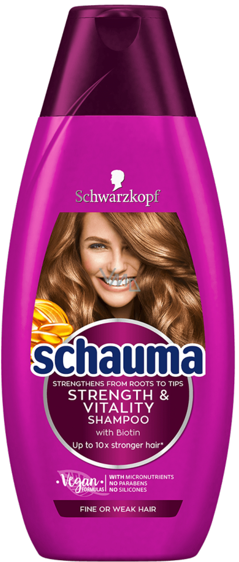 Šampon Schauma Strength & Vitality s mikroživinami a biotinem pro jemné až slabé vlasy. V kombinaci s balzámem, v porovnání s neošetřenými, poškozenými vlasy až 10x silnější vlasy. Pomáhá chránit vlasy před lámáním. Výběrový 3D komplex ingrediencí navíc podporuje ty nejlepší přirozené vlastnosti Vašich vlasů, posiluje je a poskytuje jim důkladnou regeneraci i péči. Posílení vnitřní struktury vlasů a uhlazení jejich povrchu pro zdravě vypadající hřívu od kořínků až ke konečkům.