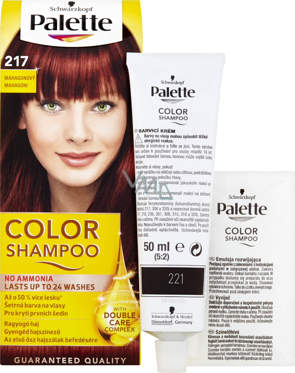 Die spezielle Rezeptur ohne Ammoniak, angereichert mit Arganöl, pflegt Ihr Haar schon beim Färben von den Wurzeln bis zu den Spitzen. Die einzigartige Kombination aus Farbcreme und Entwickler mit niedriger Konzentration, außer bei den Nuancen 320, 315, 321, 308, 317, (3 %), ermöglicht es, dass Palette Color Shampoo viel sanfter im Vergleich zu anderen höher konzentrierten Entwicklern (6 % und mehr) ist. Ebenso sorgen die speziellen Farbpigmente in der Rezeptur dafür, dass Ihre Haare ein hervorragendes Farbergebnis erhalten. Das Ergebnis sind natürlich ausdrucksstark, gesund aussehende Haare mit verstärktem Glanz.