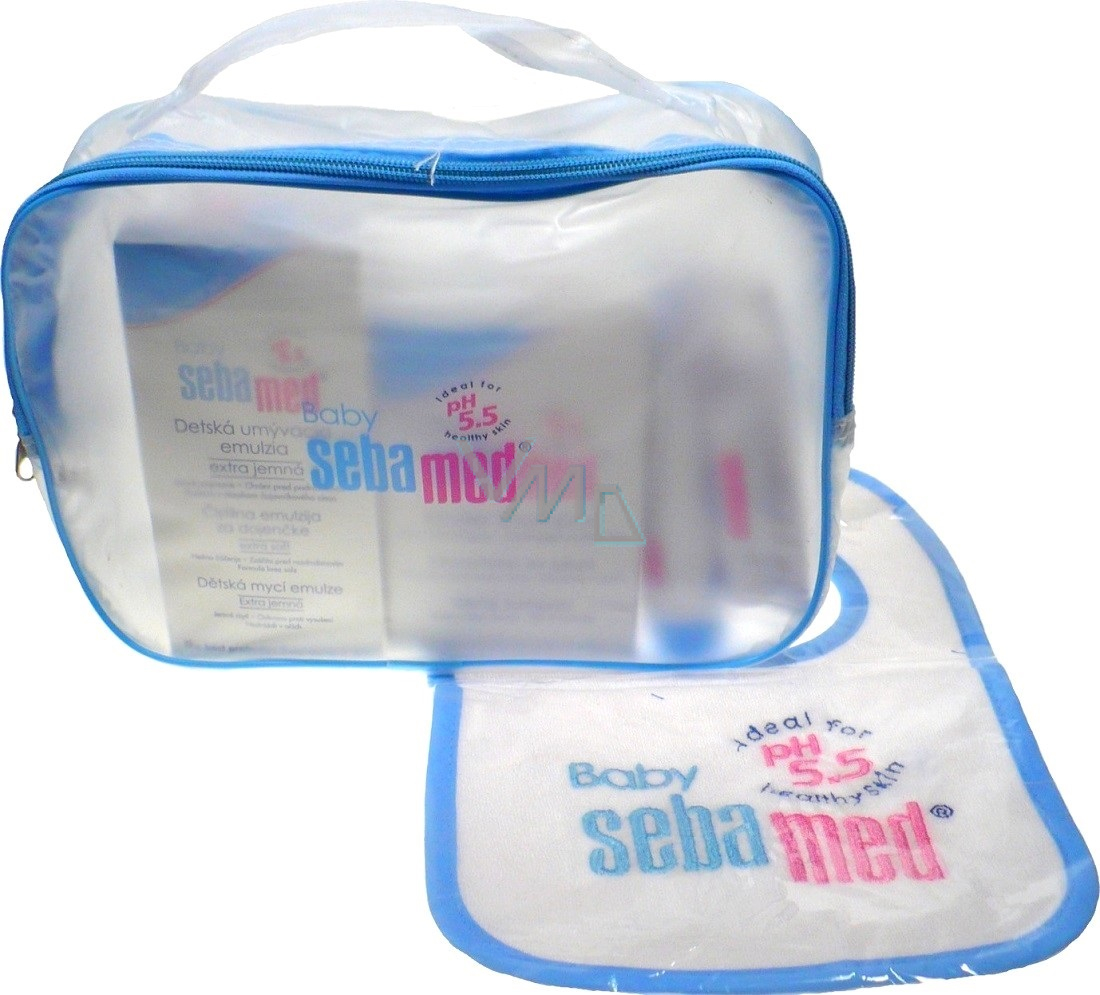 Sebamed Babywaschlotion 200 ml + Haarshampoo 150 ml + Babycreme 50 ml + Lippenbalsam 4,8 g + Lätzchen + Etue, Kosmetikset