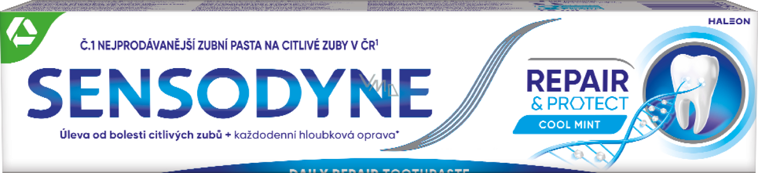Při čištění zubů dvakrát denně může zubní pasta Sensodyne Repair & Protect opravit citlivé zuby pro přetrvávající ochranu proti citlivosti. Její aktivní složka, NovaMin, vytváří ochrannou vrstvu přes citlivá místa Vašich zubů a chrání je před bolestí. Sensodyne Repair & Protect poskytuje účinnou přetrvávající úlevu od bodavé bolesti způsobované citlivostí a nabízí každodenní ochranu proti zubnímu kazu.
