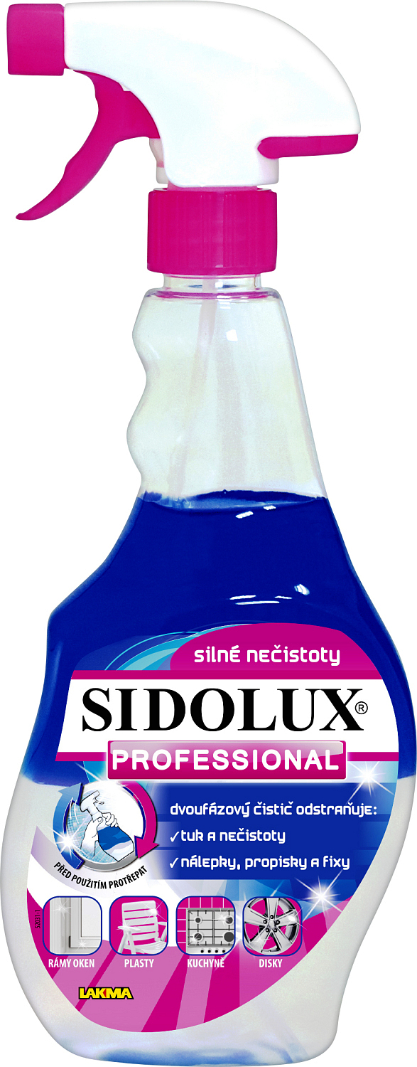 Sidolux Professional Zwei Phasen ist für sehr starke Verschmutzungen in Form von Fett, Aufklebern, Tinte und Strichen von Markern. Es handelt sich um ein sehr modernes Produkt zur Entfernung aller möglichen und unmöglichen Verschmutzungen. Es ist insbesondere zum Reinigen von Fensterrahmen, Kunststoffgartenmöbeln, Jalousien, Fahrrädern, Mährobotern, Alufelgen von Autos, Motoren und anderen mit Fett verschmutzten Oberflächen bestimmt. Es eignet sich auch hervorragend zur Entfernung von Kleber von Aufklebern, Rückständen von Markern (Filzstiften), Farbstoffen und anderen hartnäckigen Flecken. Es reinigt auch Küchenoberflächen sehr sorgfältig, insbesondere Dunstabzugshauben, fettige Backöfen, Kunststoffe, Schränke und andere abwaschbare Oberflächen. Die spezifische moderne Rezeptur des Mittels entfernt perfekt starke Verschmutzungen von Kunststoffen, keramischen Fliesen, Linoleum, Metallgegenständen, emaillierten Oberflächen.