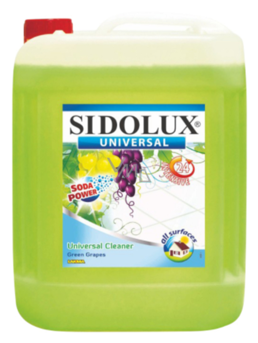 Sidolux parfemovaný univerzální čistící prostředek na všechny omyvatelné povrchy a podlahy s vůní Hroznového vína je už po mnoho let neodmyslitelnou součástí milionů evropských domácností. A ne náhodou. Produkt se stal synonymem čistoty a krásné vůně, která se v domácnosti rozhostí po úklidu. Díky unikátnímu systému Soda Power, který je součástí prostředku a jehož působení změkčuje vodu, odstraňuje velmi rychle nečistoty z povrchu. Sidolux univerzální čisticí prostředek je Vaším spolehlivým pomocníkem při domácím úklidu. Produkt se skvěle hodí na čištění veškerých omyvatelných povrchů.