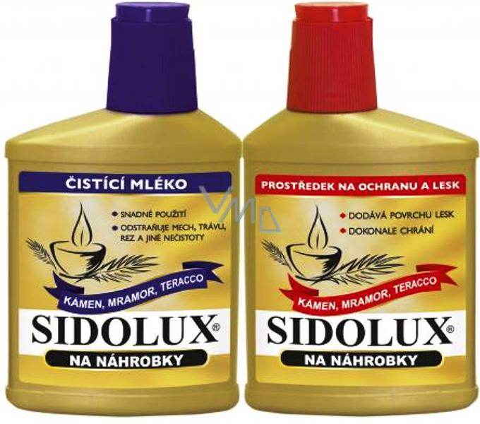SIDOLUX ČISTIČ účinně čistí náhrobky a jiné povrchy z kamene, mramoru a teracové dlažby, nepoškrábe čištěné povrchy, nezanecháva šmouhy ani skvrny, jednoduše a pohodlně se používá, odstraňuje mech, lišejník a jiná komplikovaná znečištění.