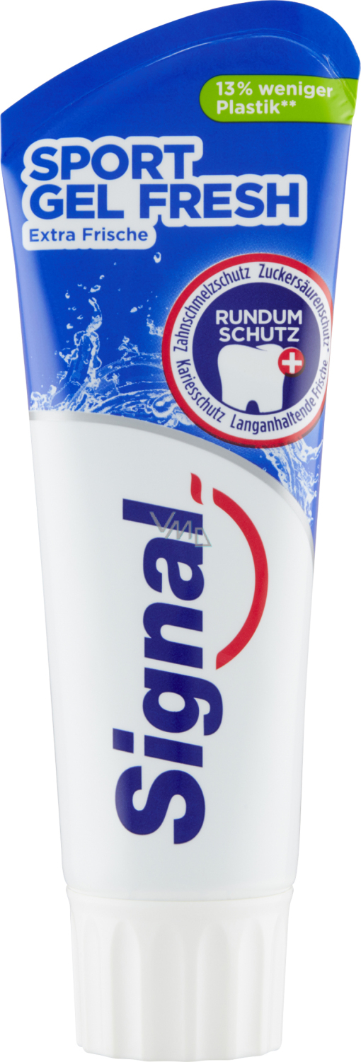 Die neue Zahnpasta von Signal bietet Kariesschutz für die ganze Familie! Darüber hinaus ist diese neue Tube recycelbar und benötigt 13 % weniger Plastik im Vergleich zur vorherigen Verpackung dank unserer innovativen Technologie.. Eigenschaften der Signal Zahnpasta: