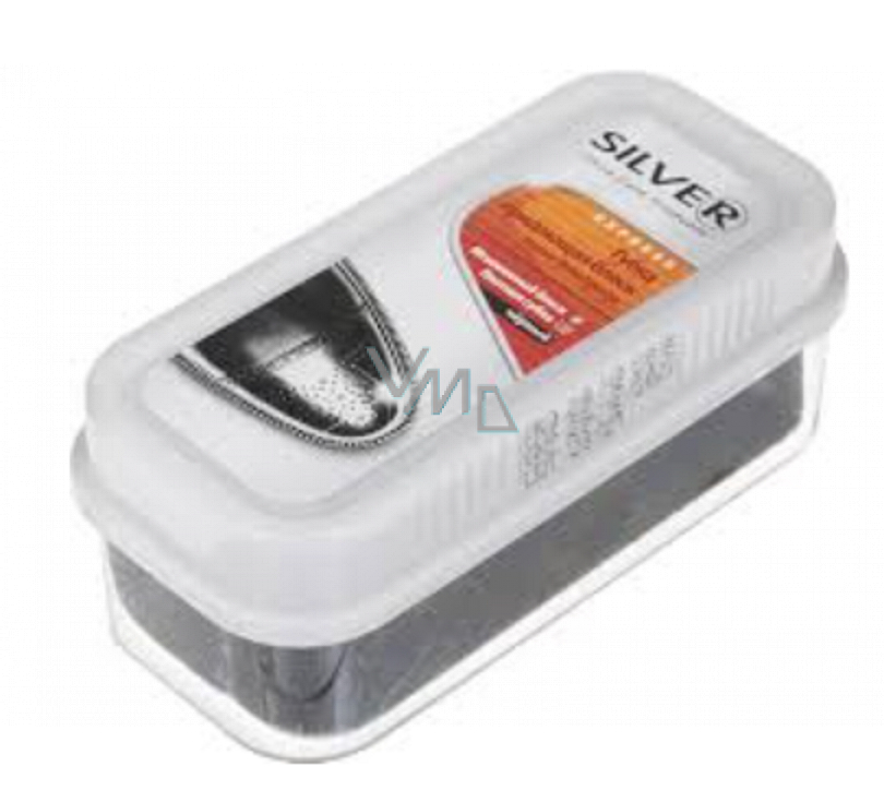 Silver samoleštící houbička na obuv Black - napuštěná houbička černým krémem na obuv. Poskytuje okamžitý lesk obuvi a všem doplňkům z hladké pravé a syntetické kůže.