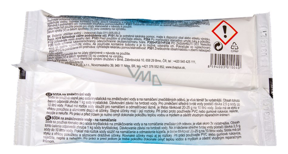 - přidáním k pracímu prášku při praní v pračce zabraňuje tvorbě vodního kamene