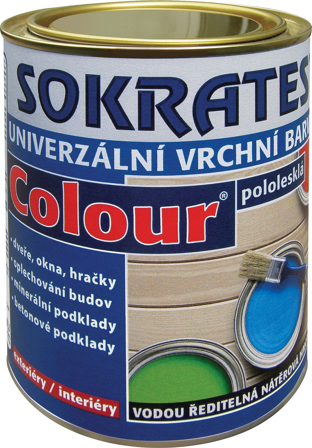Innen und außen für Holzteile von Gebäuden, Sportgeräte, Büromaterial, Papier, mineralische Untergründe, Blechdächer, Dachrinnen, Stahlkonstruktionen. SOKRATES Colour ist für den Anstrich von Spielzeugen und Gegenständen für Kinder bis 3 Jahre (außer belasteten Arbeitsflächen) zugelassen.