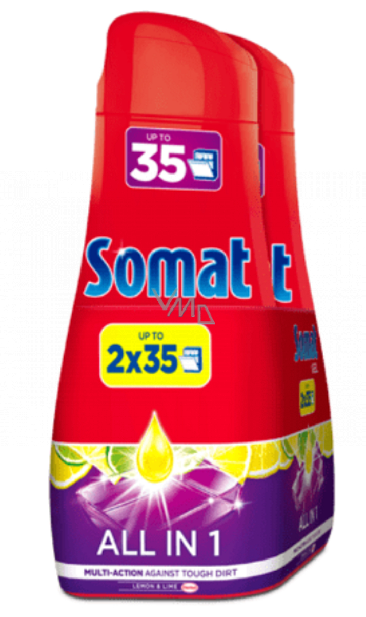 Somat gel All in 1 Lemon & Lime je první multifunkční gel ve své řadě. Kromě toho, že je známý svou funkcí solí a leštidla, umí také efektivně chránit sklo před korozí. Množství gelu lze přizpůsobit množství nádobí či míře znečištění nádobí.