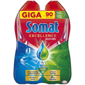 Multifunkční tekutý prostředek na mytí nádobí Somat Excellence Duo kombinuje dvě doplňující se složení, která působí proti odolným skvrnám a nečistotám! Gel do myčky nádobí se rychle rozpouští i při ekologických cyklech s nízkými teplotami, takže nezanechává žádné zbytky a poskytuje zářivě čistý lesk po každém mycím cyklu. Navíc složení gelu proti mastnotě obsahuje aktivní odmašťovače pro čisté a lesklé nádobí! Tekutý čisticí prostředek do myčky nádobí lze snadno dávkovat podle kapacity myčky a znečištění nádobí. Můžete ušetřit vodu a až 20% energie přepnutím na eco program s nízkou teplotou nebo krátký program s nízkou teplotou při zachování excelentní čistoty a lesku. Somat Excellence Duo Gel poskytuje perfektní mycí výsledek dokonce i v případě, že kontrolka soli nebo oplachovače svítí. V obou případech je funkce oplachovače i změkčovače vody zachována.