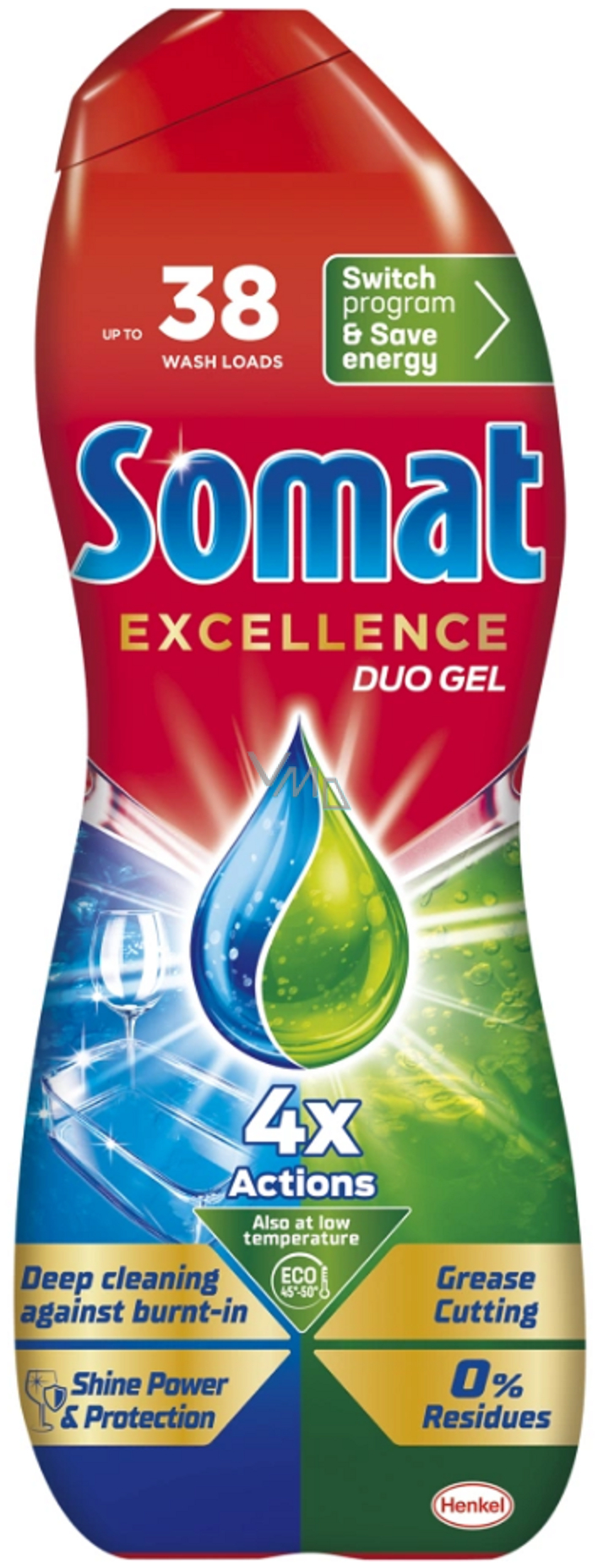 S Somat Excellence Duo gelem pro myčku získáte vynikající čisticí výkon, brilantní lesk a ochranu proti vodnímu kameni při šetření energií a vody. Tento gel je ideální volbou pro efektivní a ekologické mytí nádobí.