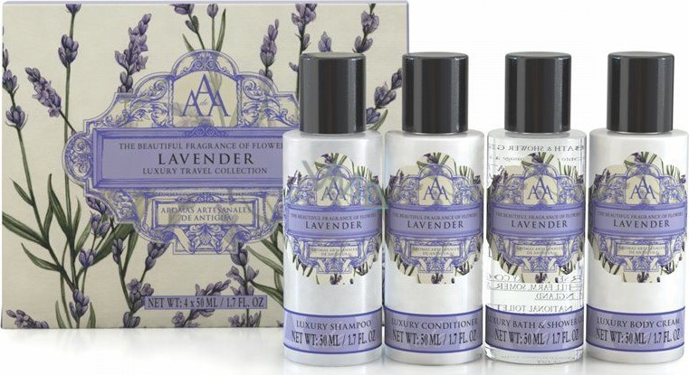 Somerset Toiletry Lavendel Haarshampoo 50 ml + Haarspülung 50 ml + Duschgel 50 ml + Körperlotion 50 ml, Geschenk-Reiseset