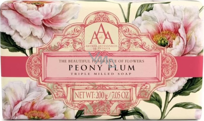 Luxusní třikrát mleté mýdlo s nezaměnitelnou vůní pivoňky šetrně čistí a zanechává provoněnou pokožku.