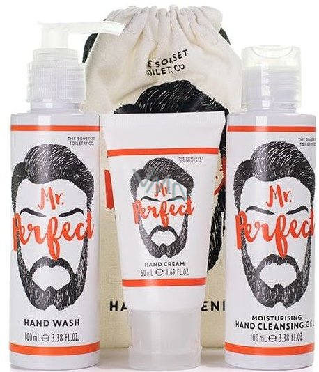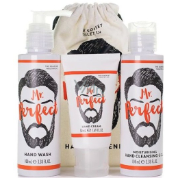 Sada péče o ruce pro "pana dokonalého" nabízí ultimátní balíček obsahující tekuté mýdlo na ruce, krém na ruce a hydratační dezinfekční gel. Celá řada nabízí čerstvou vůni máty se sladkým aroma pačuli.