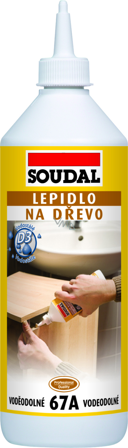 Soudal 67A hochwertige Bauwasserbeständige Holzleim für Tischler und Zimmerer mit sehr schneller Aushärtungszeit und Verbindungsfestigkeit. Bau Verklebung von Holzelementen im Bauwesen und Industrie. Verklebung von Verbindungen von Gartenmöbeln, Küchenarbeitsplatten, Holztreppen, Eurofenstern und anderen Produkten aus allen Arten von Harthölzern und exotischen Hölzern. Verklebung von Spanplatten, Holzvorlagen usw. Nach dem Trocknen halbtransparent mit der Klassifizierung in der Widerstandskategorie gegen Feuchtigkeit D3 (ČSN EN 204).