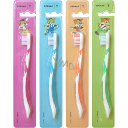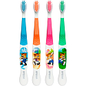 Weiche Borsten, gerader Schnitt, zweikomponenten Griff mit weicher rutschfester Schicht, für Kinder von 5 bis 8 Jahren.